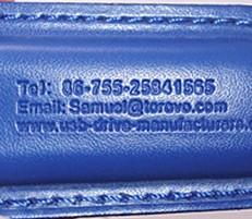 皮制的質(zhì)感非常出眾,紅色、藍(lán)色、綠色、咖啡色、黑色等多色可選,皮料四周由一圈密實的尼龍線縫制,每一個針腳縫線做工都非常精致。Logo采用壓印設(shè)計,凹凸感的文字清晰美觀和U盤渾然一體成為貴公司宣傳的好幫手。