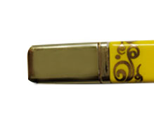 現(xiàn)在市場(chǎng)上的金屬U盤相對(duì)較少,即使有金屬U盤也難免是銀色表面或者是黑色磨砂效果,而像這樣的金色鏡面U盤可謂甚是罕見(jiàn),并且U盤采用的是純金表面,更是U盤中的極品。棱角分明的外形配合上蓋帽設(shè)計(jì),這樣的搭配在奢華富貴中更顯高雅。